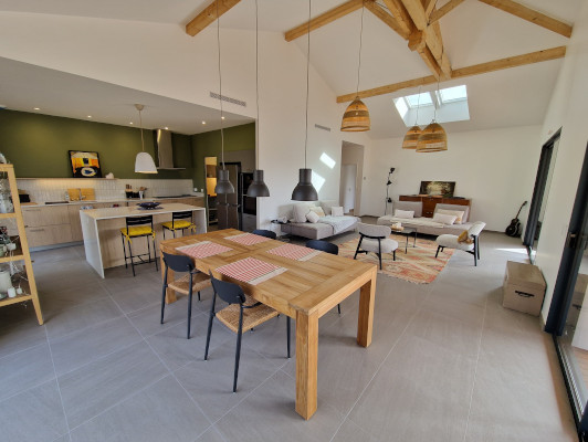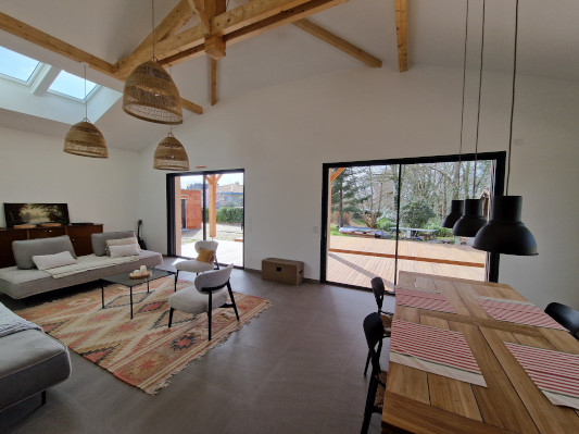 - Pièce de vie ouverte de 71m² avec charpente traditionnelle et velux