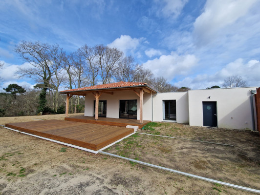 Maison moderne de plain pied de 141.10m² habitable avec garage de 27.91m², Terrasse couverte, Pool house et Piscine couverte: